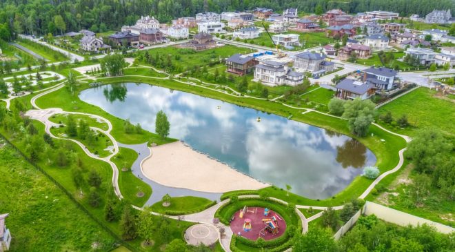 3. Непременно обратим ваше внимание на то, что внутри данного элитного поселка создано определенное насаждение, и это провоцирует озеленение. Тут также присутствуют спортивные и детские площадки;